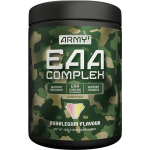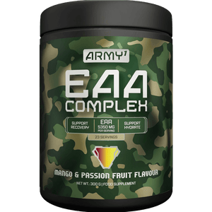 ARMY 1 EAA COMPLEX هي تركيبة قوية ولذيذة، مليئة بجميع الأحماض الأمينية الأساسية التسعة، بالإضافة إلى فيتامينات B12 وB6.