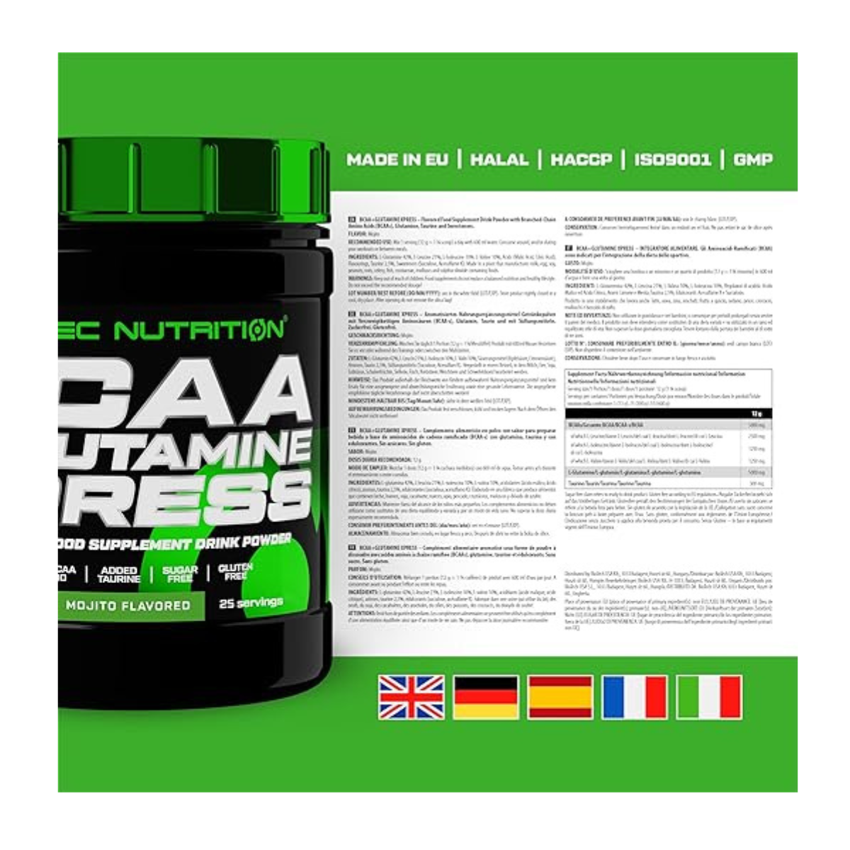 يجمع منتج SCITEC بين قوة الأحماض الأمينية المتفرعة السلسلة (ليوسين، إيزوليوسين، فالين) مع الجلوتامين لتقديم تركيبة فعّالة لتعافي العضلات. يدعم هذا المنتج بناء العضلات الخالية من الدهون، وتسريع عملية التعافي، وتحسين الأداء الرياضي - كل ذلك بجرعة واحدة.