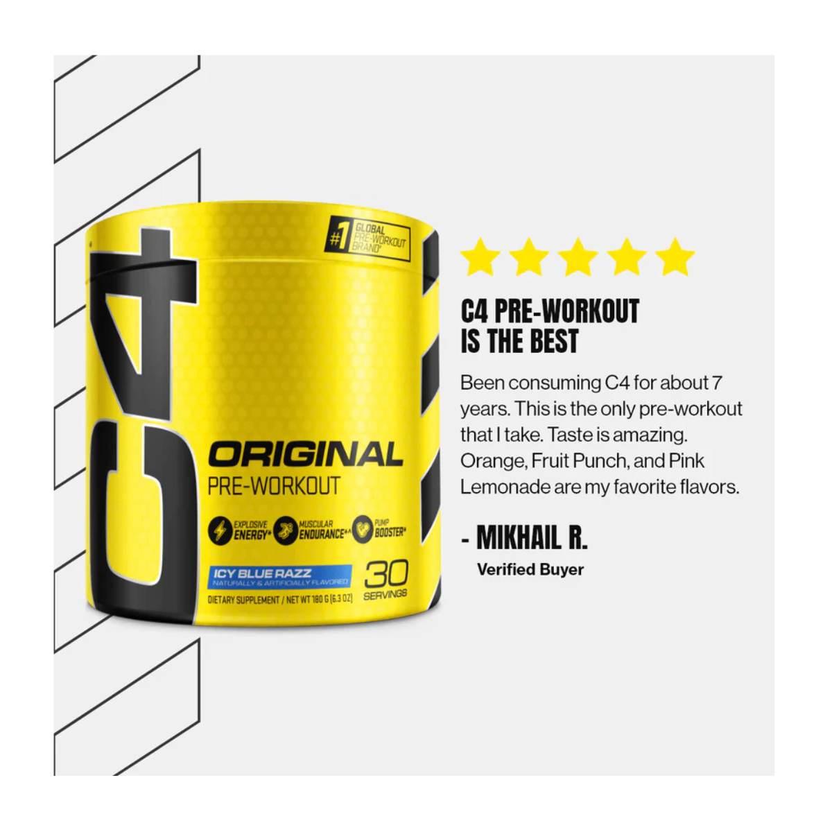 العلامة التجارية رقم 1 عالميًا لمنتج ما قبل التمرين*: منتجنا الأصلي لمنتج ما قبل التمرين الذي بدأ كل شيء - C4 Original مصمم لرفع طاقتك وقدرتك على التحمل العضلي ومضخاتك إلى المستوى التالي.